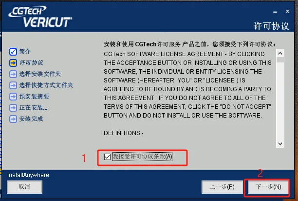 第七步:勾选【我接受许可协议条款】,点【下一步】。