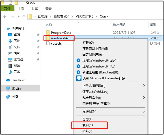 第三十一步:返回【Crack】文件夹,复制【windows64】文件夹。