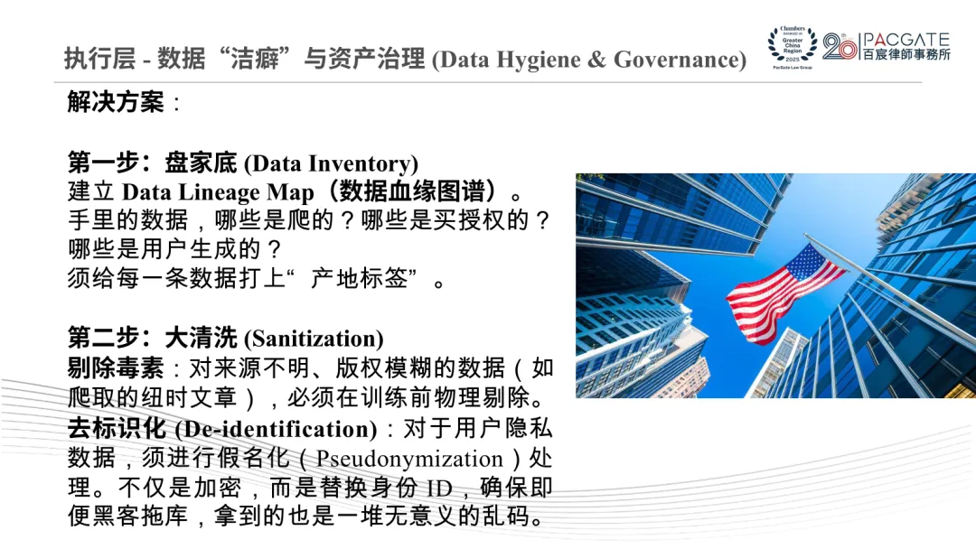 这是应对训练数据法律风险的基础工程。“数据洁癖” 是一个形象的说法,指企业必须像保持个人卫生一样,严格管理数据的全生命周期:从数据收集时的合法授权,到存储和使用中的合规审计,再到定期的数据 “体检” 和清理。