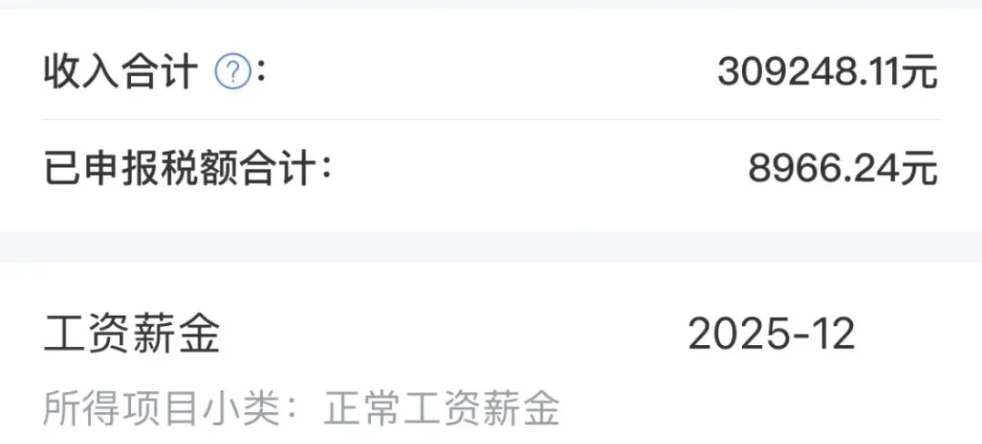 先说说我的直观数据:2025年全年个税申报收入30.9W,2024年是30.2W,单看数字几乎持平,甚至微弱上涨,可只有自己清楚,这看似平稳的背后,是常规薪资有所下调。