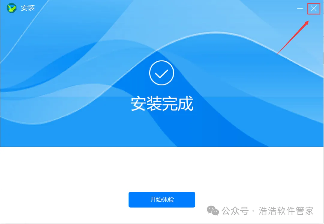 6、软件安装成功,点击右上角【关闭按钮】