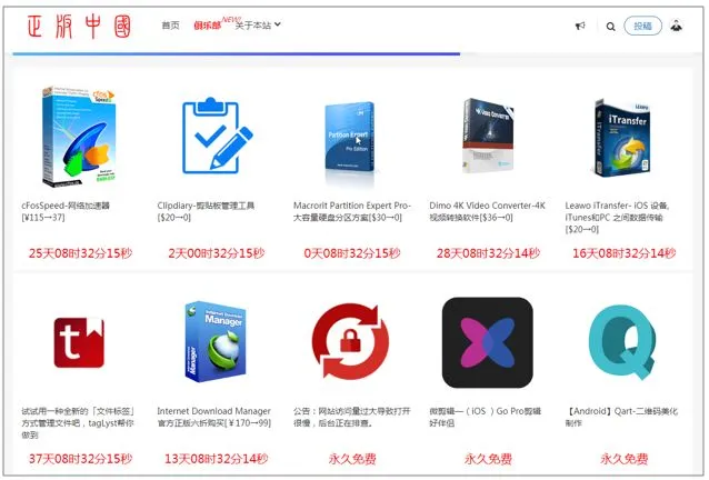 当然啦。正版中国也不是全部都是免费软件,主要是分为永久免费、限时折扣以及限时免费等等。