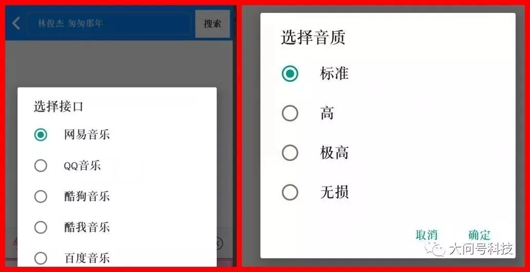 比如搜索歌曲,选择接口(有的歌曲接口不好用,可尝试更换)和音质: