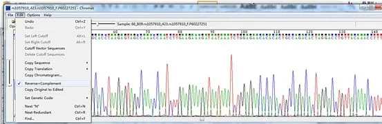 如果是反向序列,我们可以这样做:打开Edit,选择Reverse+Complement√,我们就得到该DNA位点的反向序列了。