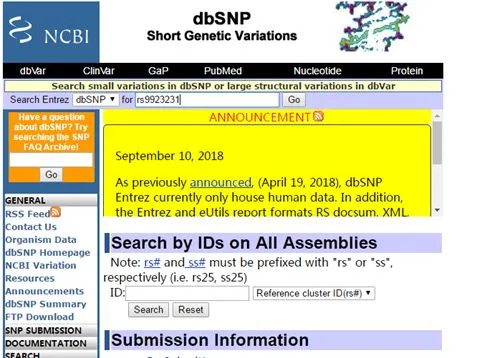 这个文件包含两列,第一列为SNP的名字,第二列为SNP的物理位置(bp)。很多情况下我们使用的SNP的名字为dbSNP中的名字,是用rs….表示的。因此第一列很多情况下rs开头的名称。第二列以rs9923231为例,我们在NCBI的SNP网站上可以轻松查到(https://www.ncbi.nlm.nih.gov/snp/),如下图: