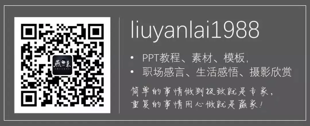 以上为本期内容,更多精彩内容,请您扫描下方二维码加入燕归来的知识星球。在这里燕归来与您分享更多有价值的PPT技能和素材。