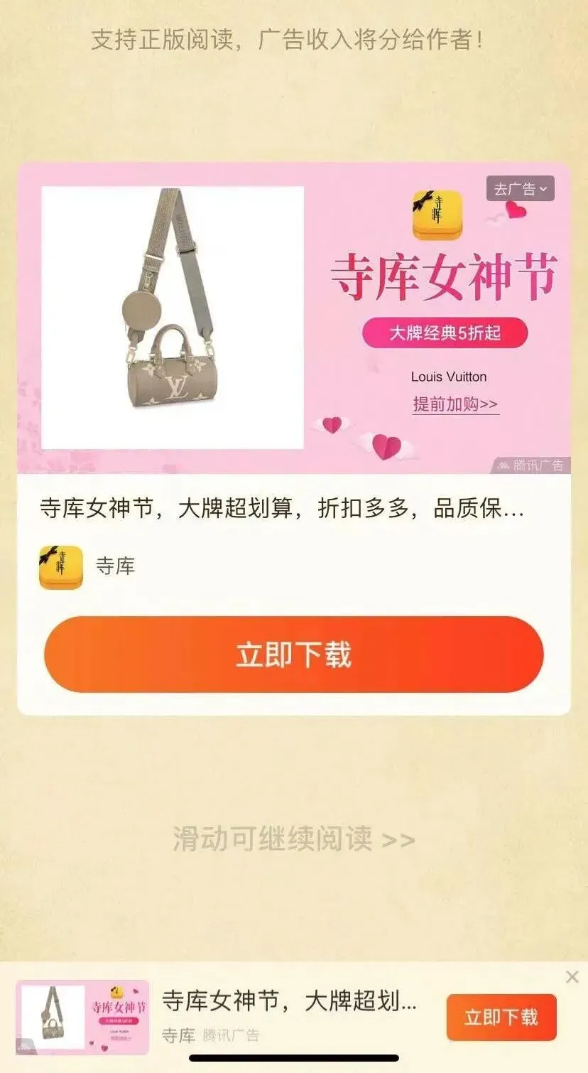 第二个,当读者了解到该广告收入最后是流入作者的钱包,作为正在阅读该作者作品的用户来说,即使阅读体验欠佳,多多少少也不会出现排斥的心理,总的来说对广告的接受度较高。