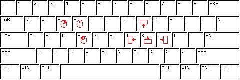 键盘按 I、J、K、L,分别对应光标上左下右移动,而鼠标的左键中键和右键的点击则是 F、R、E 三个按键。