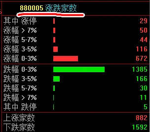 最后,补充一下,大家都很关心的我的夜报里的涨跌幅分布图,现在统一回复:通达信里输入880005就可以看到两市涨跌分布,880035可以看到创业板涨跌分布。