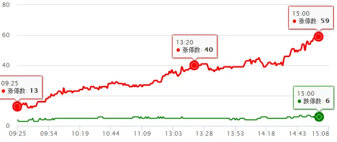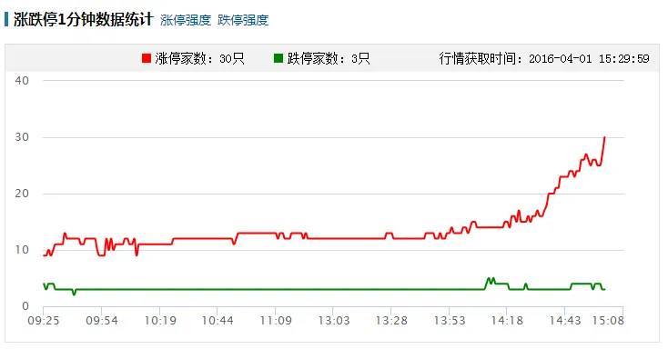 也就是我每日夜报里天天都会有的图表统计,对市场涨跌停家数进行的一个分时统计,平时的界面是这样的:
