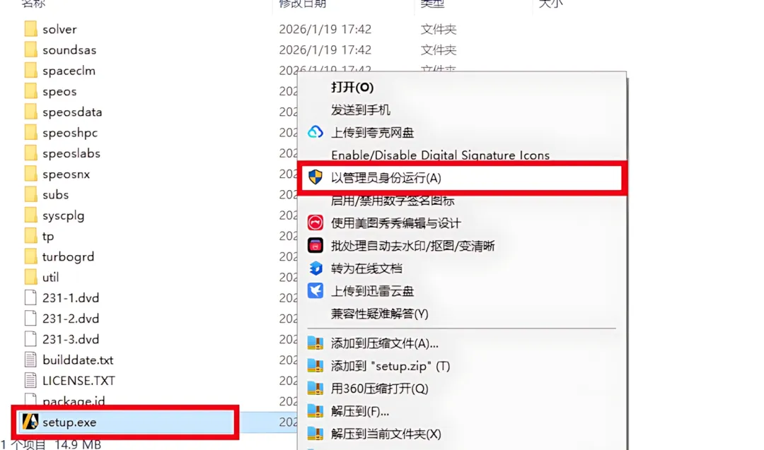 3.鼠标右击【setup】选择【以管理员身份运行】。