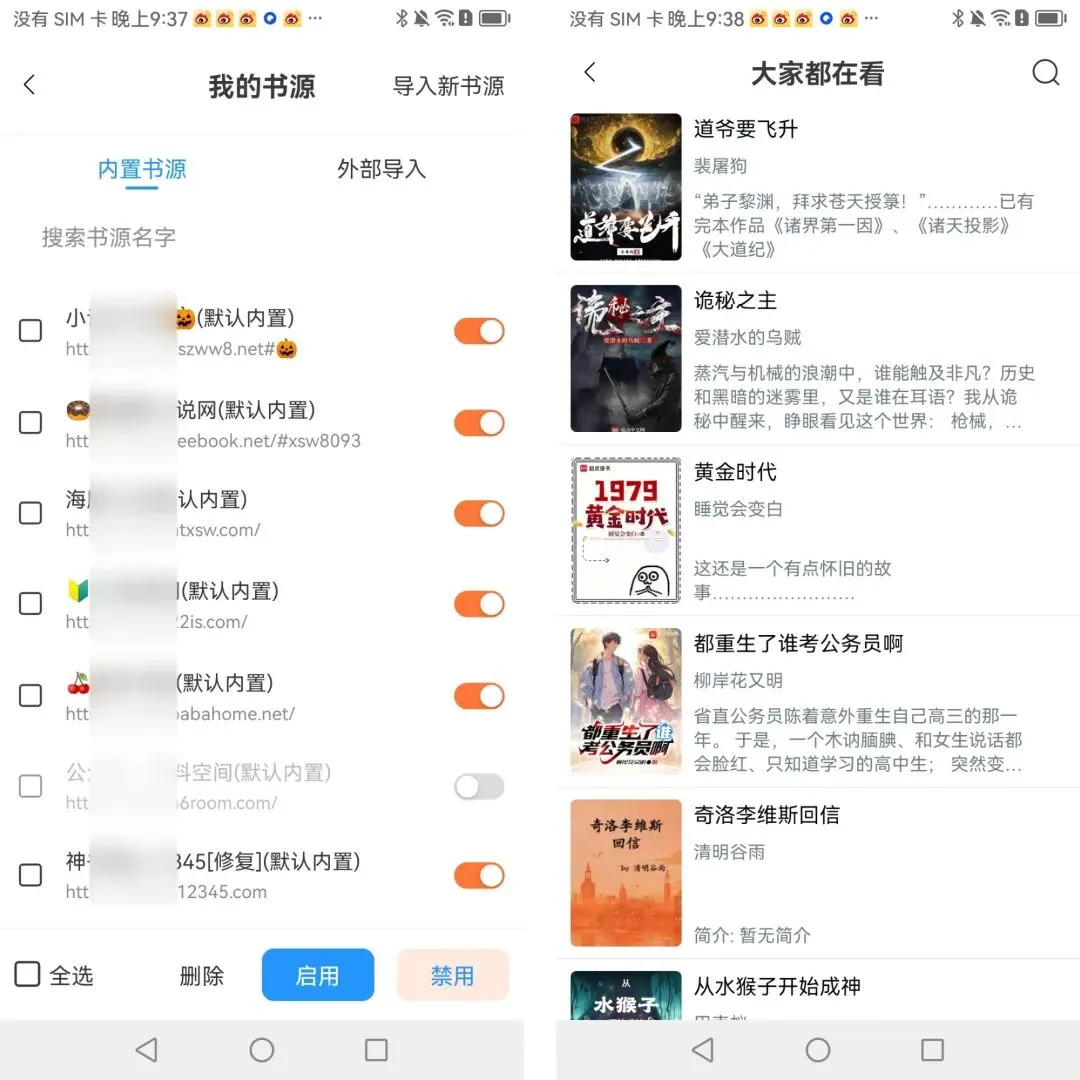 软件已内置无数个书源合集,完全够用,也可以自动手动导入新书源