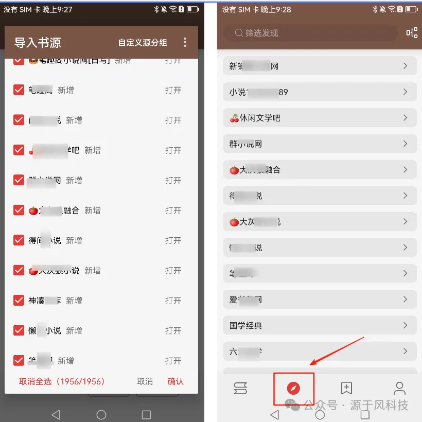 这里解析成功后,就能出来很多小说资源出来,全部勾选后,点击【确认】。这时在点击下面第二个菜单后,就会出来很多资源了