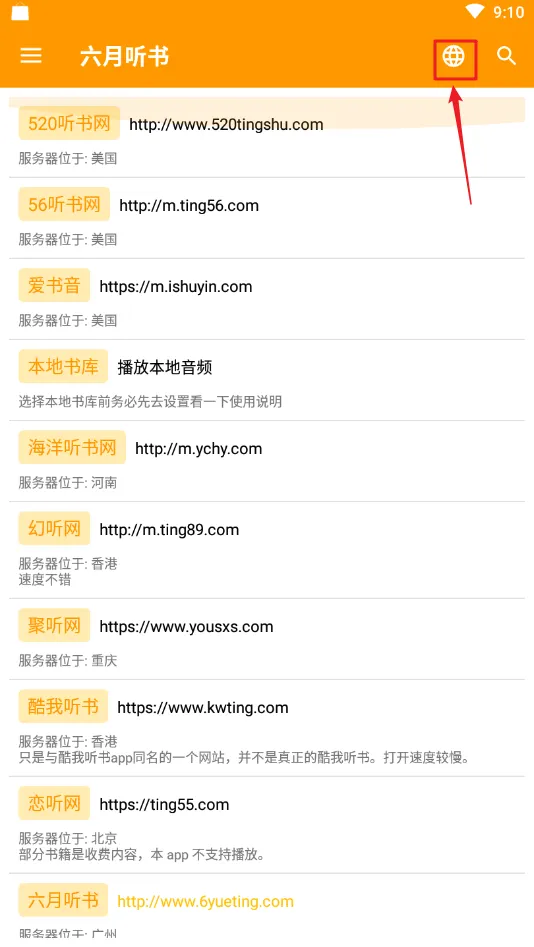 首页的截图如上,这只是一个书源的内容,点击上方的“圆球”可以切换书源,可以看到下方丰富的书源,不想用app的可以直接去网站中下载或收听。