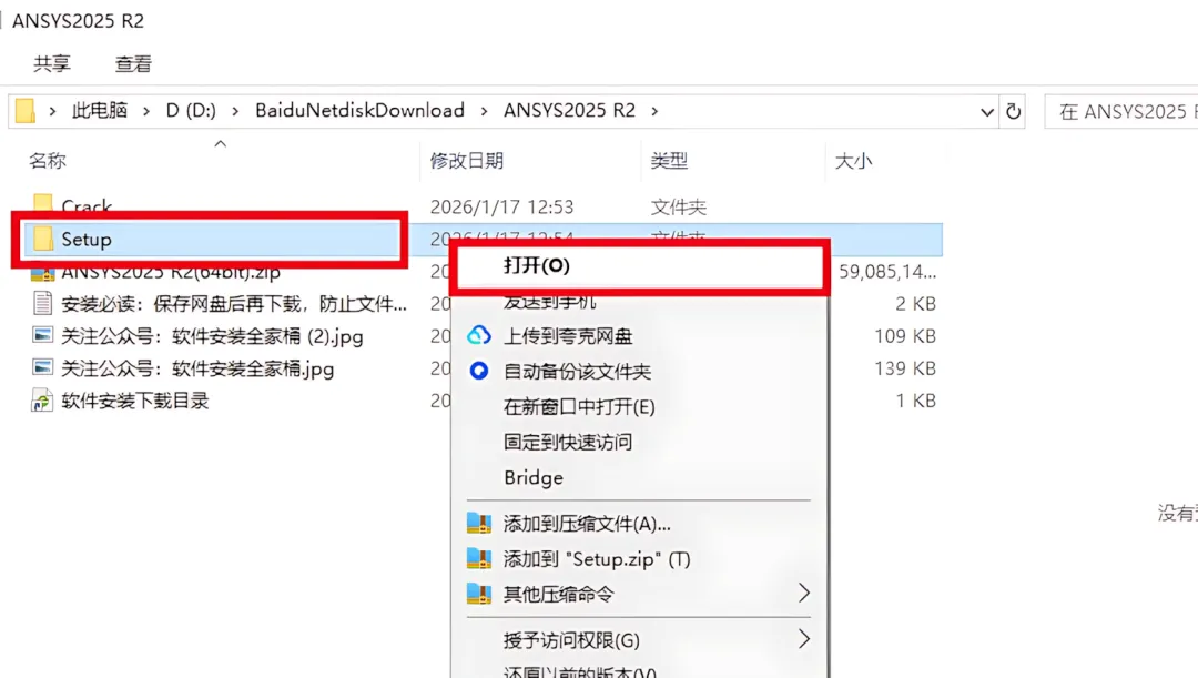 2.打开解压后的文件夹,右击打开【Setup】文件夹。