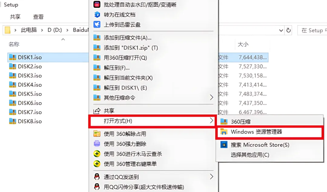 29.打开安装包解压后的【ANSYS2025 R2(64bit)】文件夹中【Setup】文件夹,鼠标右击【DISK1】选择【装载】。