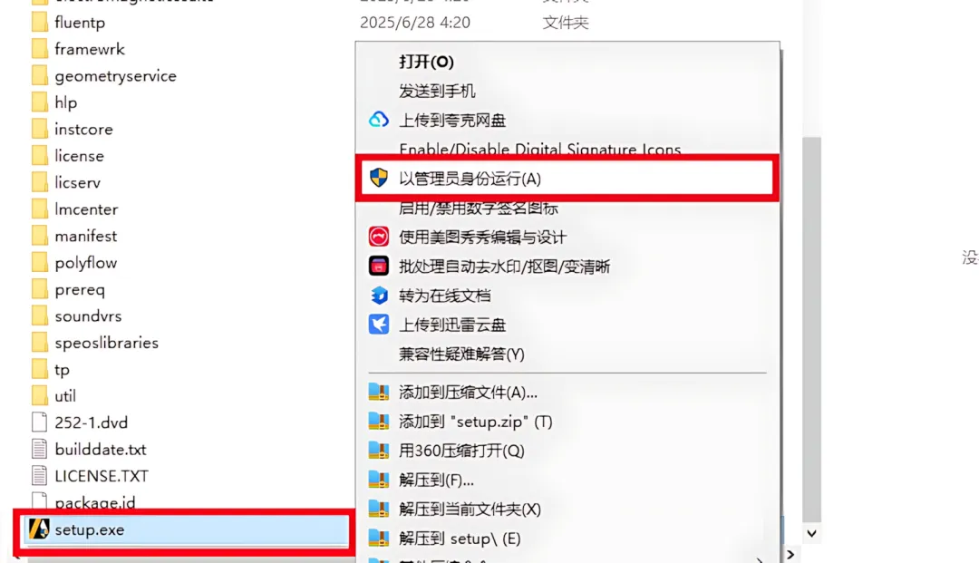 4.鼠标右击【setup】选择【以管理员身份运行】。