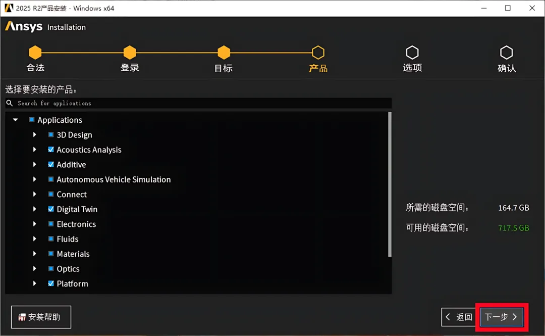 ANSYS2025版本包含旗下众多模块,只勾选自己需要使用的产品模块即可。