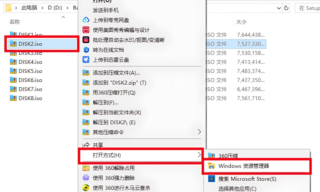 3.鼠标右击【DISK1】选择【装载】(如没有装载选项,请选择用“打开方式—Windows资源管理器”)。