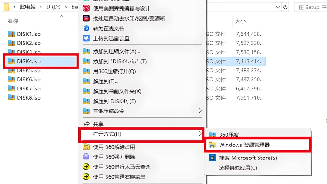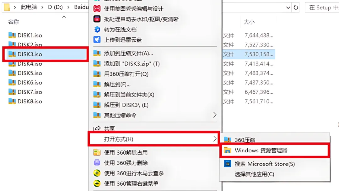 48.打开安装包解压后的【ANSYS2025 R2(64bit)】文件夹中【Setup】文件夹,鼠标右击【DISK3】选择【装载】,点击“向左”箭头。