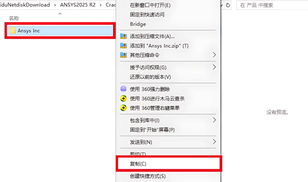 16.鼠标右击【ANSYS Inc】选择【复制】。