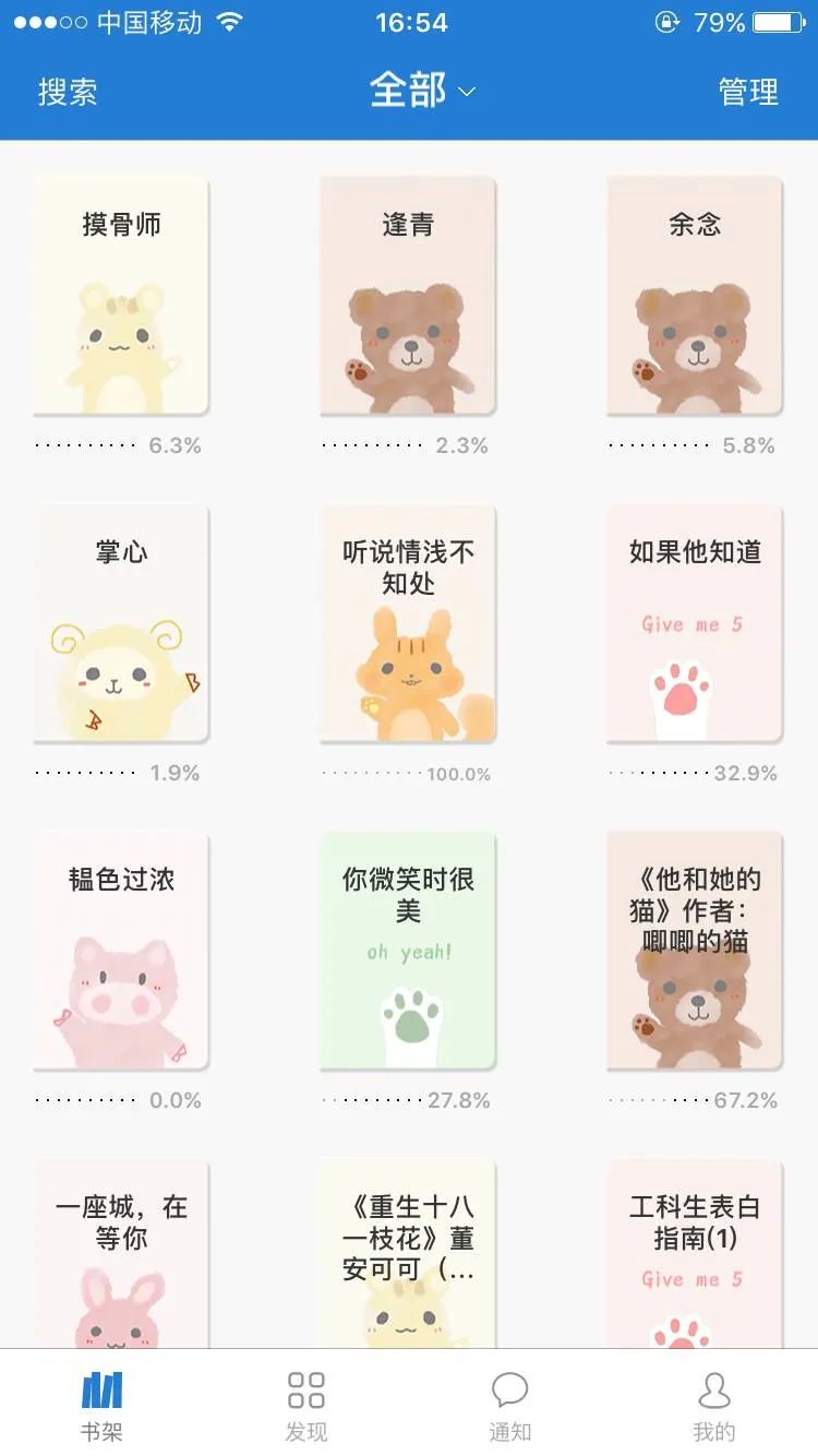 进入小说app就是书架,点击右上角的“管理”,会显示“批量管理”,然后就可以进行批量删除和移动啦~