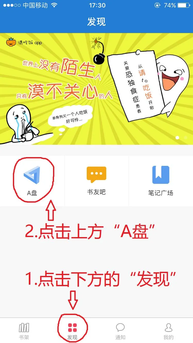 想要看A盘的文件,点击“发现”,然后点击“A盘”,再点击“云端”即可看到上传的小说,点击小说即可下载。然后点“云端管理”的“A盘云端管理”即可删除云文件。从A盘下载的小说则点击“已下载”即可查看,删除小说也是选择“下载管理”。