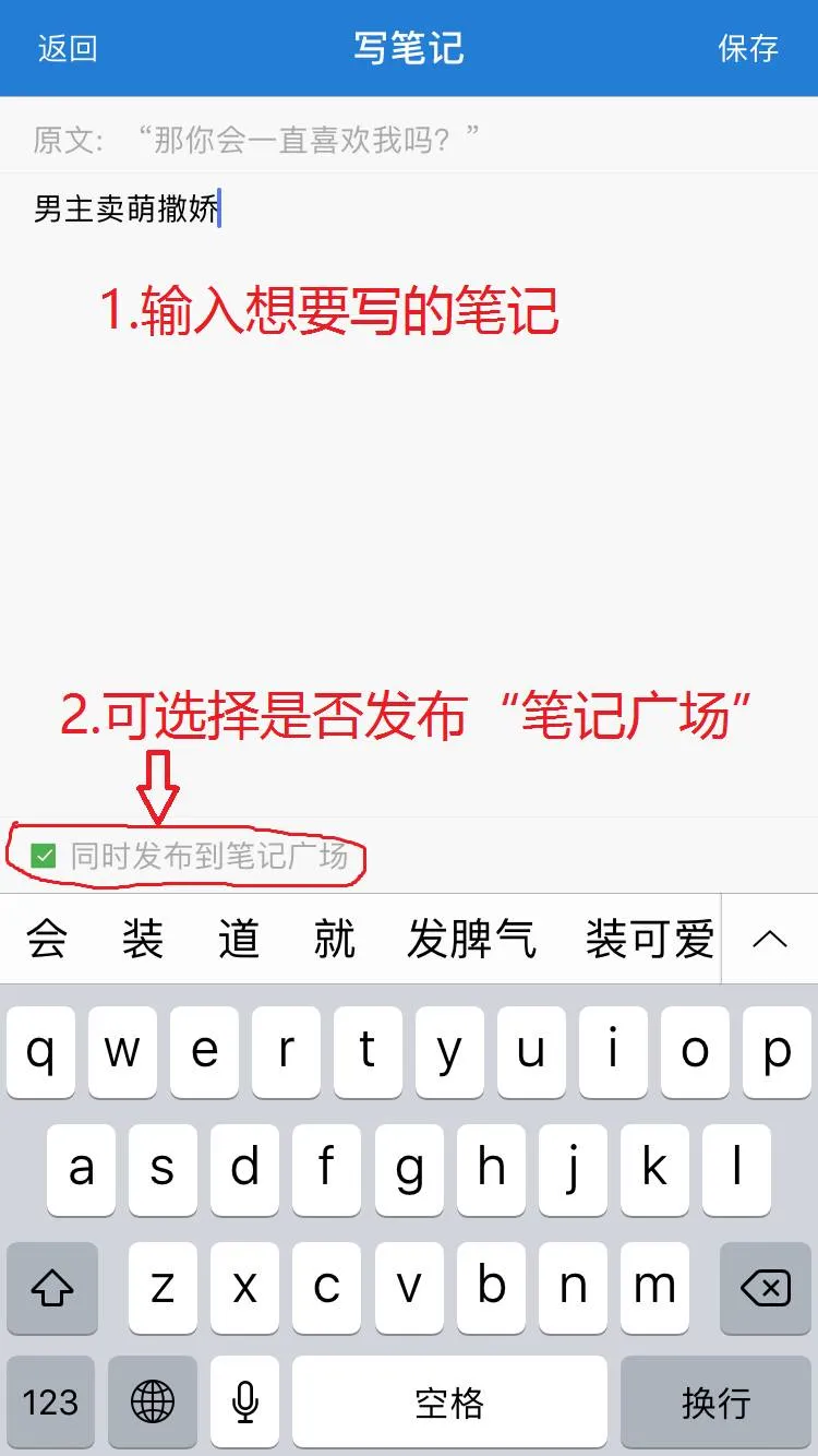 分享到“笔记广场”的意思就是分享你的笔记给所有人看。当然你也可以选择不分享,这功能拿来做笔记也很好,可以记录你喜欢的话。发布笔记的话,好友也是可以看到的。