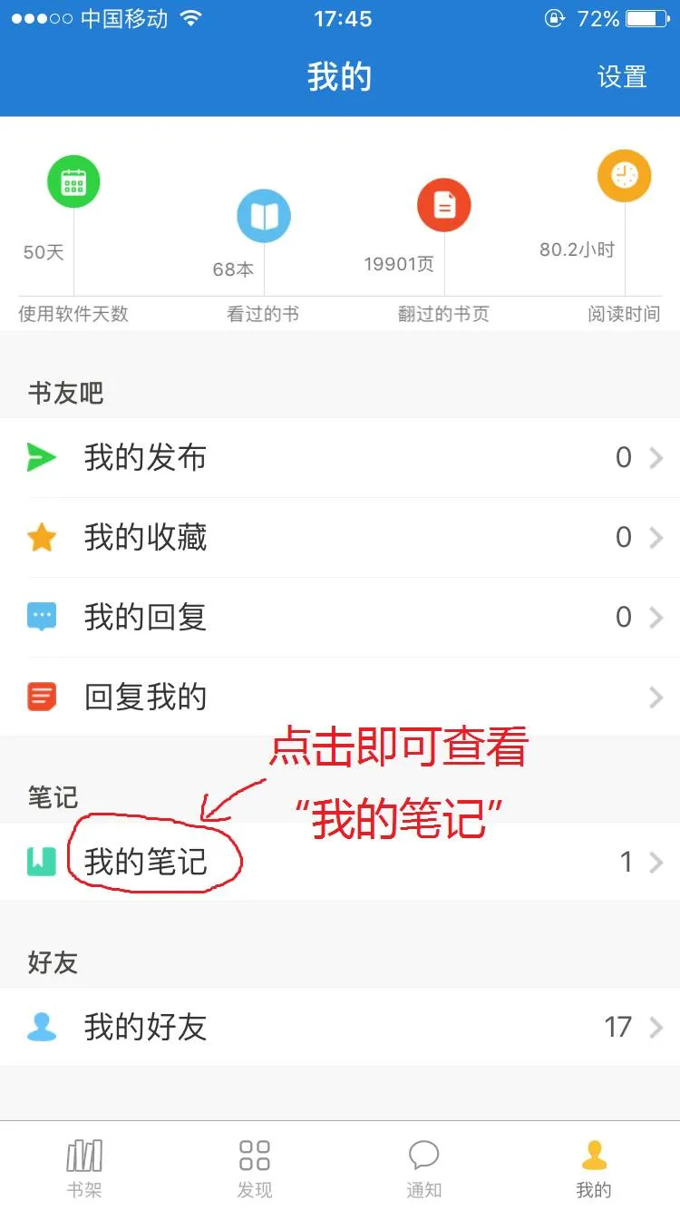 写完笔记后,点击“发现”—“笔记广场”可看到大家的笔记,点击“我的”—“我的笔记”,就可看到自己的笔记,但不支持太长的。注意:笔记貌似不支持删除。