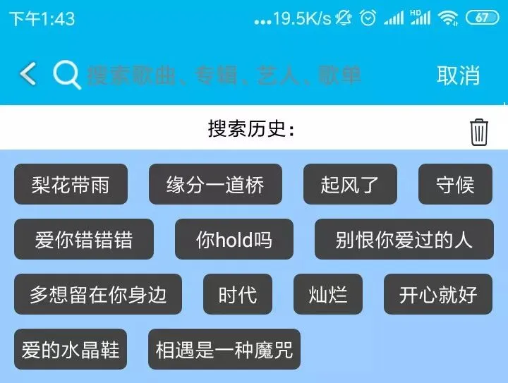如图是这个软件的搜索界面,大家进入到这个搜索界面就可以搜索我们想要搜索的歌曲了。
