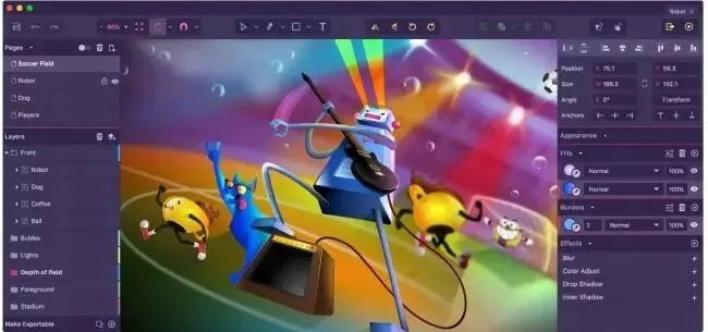 它是一款功能齐全的矢量设计应用,适用于各种各样的工作,从屏幕和图标设计到演示、插图和动画。