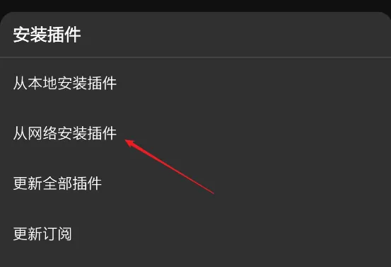 接着点击右下角的“➕”找到“从网络安装插件”,输入下方插件地址点击确认即可。