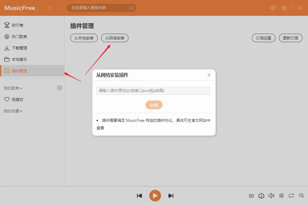 其他版本的使用方法与安卓版大同小异,都需要先安装插件才能搜索音乐,插件链接也都是同一个。