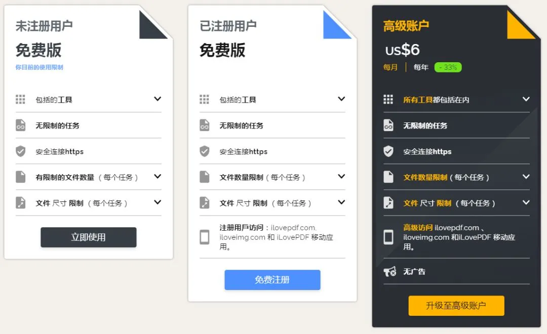 但是仔细研究这个网站的条款,会发现所有功能都是免费的。不管是免费用户还是付费用户,都可以使用网站的所有图片工具。不过付费用户可以享受最少的文件数量限制和文件尺寸限制。