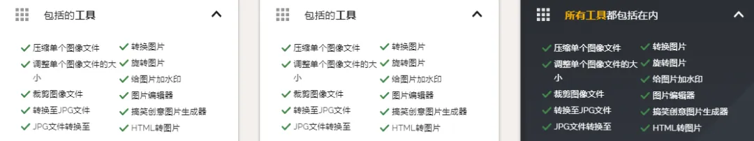 iLoveIMG有很多功能:压缩单个图片文件、调整单个图像文件的大小、裁剪图像文件、转换至JPG文件、JPG文件转换至、照片编辑器、给图片加水印、搞笑创意图片生成器、旋转图片,以及全新功能:HTML转图片。