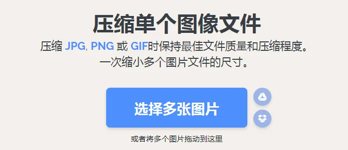 压缩单个图像文件功能,可以压缩本地电脑或云账户的JPG、PNG或动图GIF文件,不会破坏原文件的质量。而且可以一次压缩多个图像文件。
