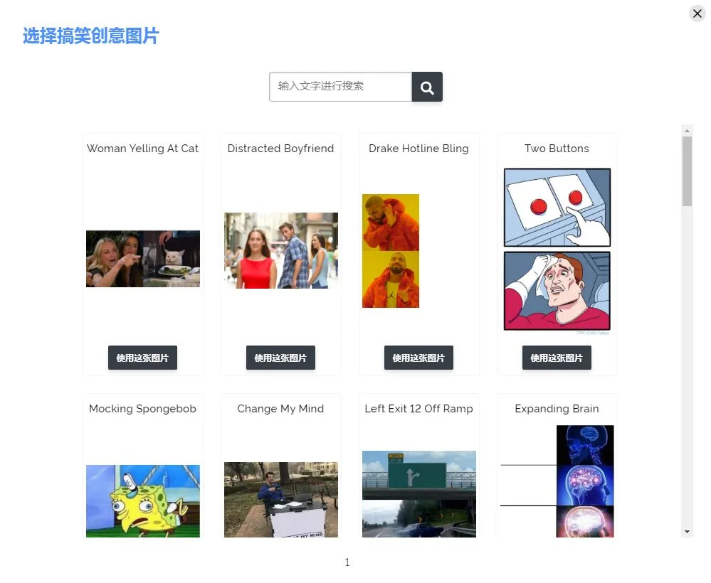 2. 在模板库通过滚动鼠标或者输入文字进行搜索,选择合适的搞笑创意图片;