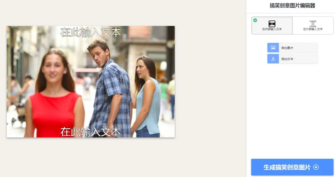 3. 模板中输入自己想显示的文本,生成专属于自己的搞笑创意图片。