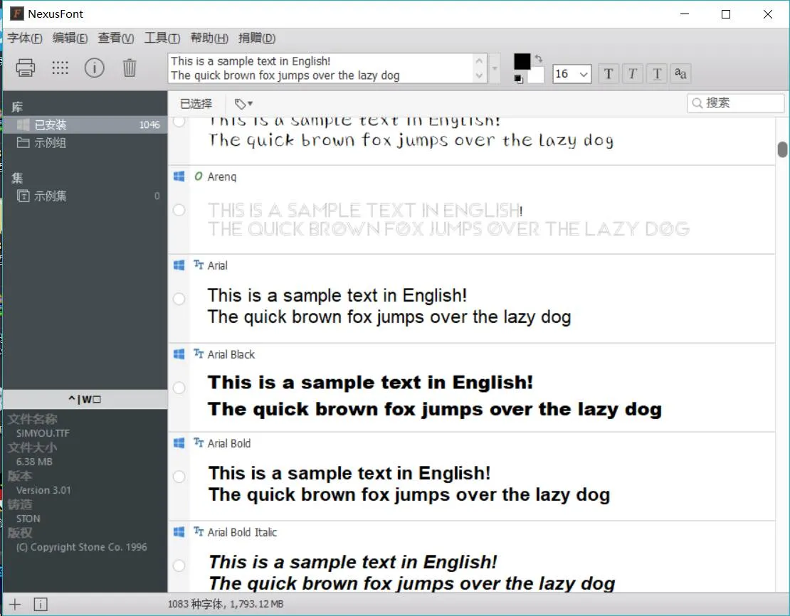 Nexusfont这款软件的作用即是浏览和筛选字体,支持 Tag(标签)和Set Tag.