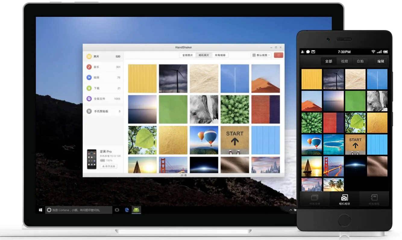 在登录Windows平台之后,也同样保证了简洁的画面和图标设计,也不需要在手机上安装任何软件,即插即用,美中不足的是对usb3.0 支持较差,应该在日后的版本中能得到改善。