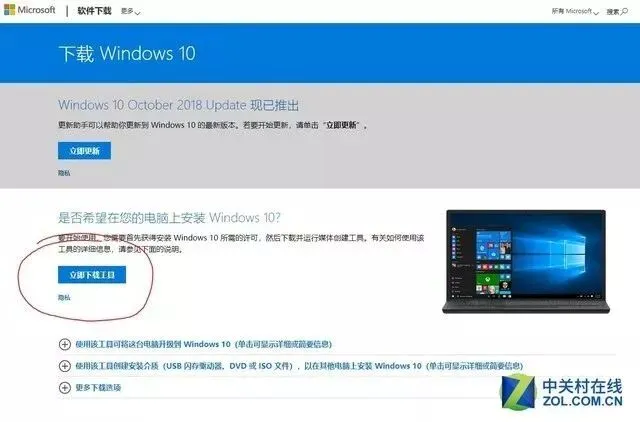 第一步,打开微软官网-Windows下载页面,点此直达,点击位于页面中央偏上的“立即下载工具”按钮,此时浏览器会下载一个文件名为“MediaCreationTool1809.exe”的可执行程序,保存之后运行即可。