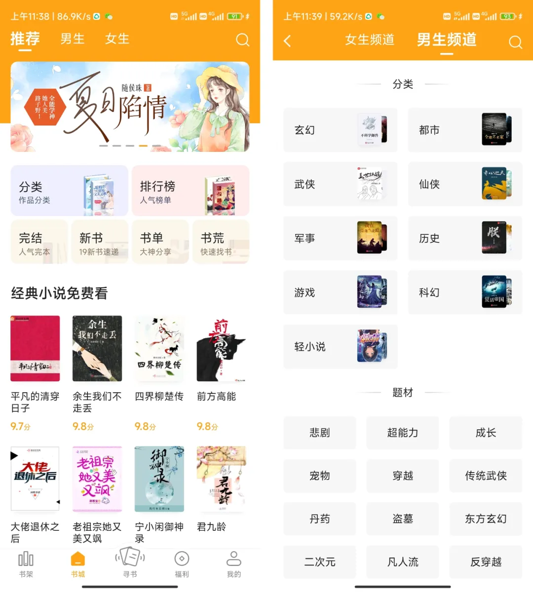 各种经典小说免费看,分为男生和女生频道,女生频道有言情纯爱同人等等,男生频道有玄幻,都市,武侠等等,分类很多,自己去看就行了