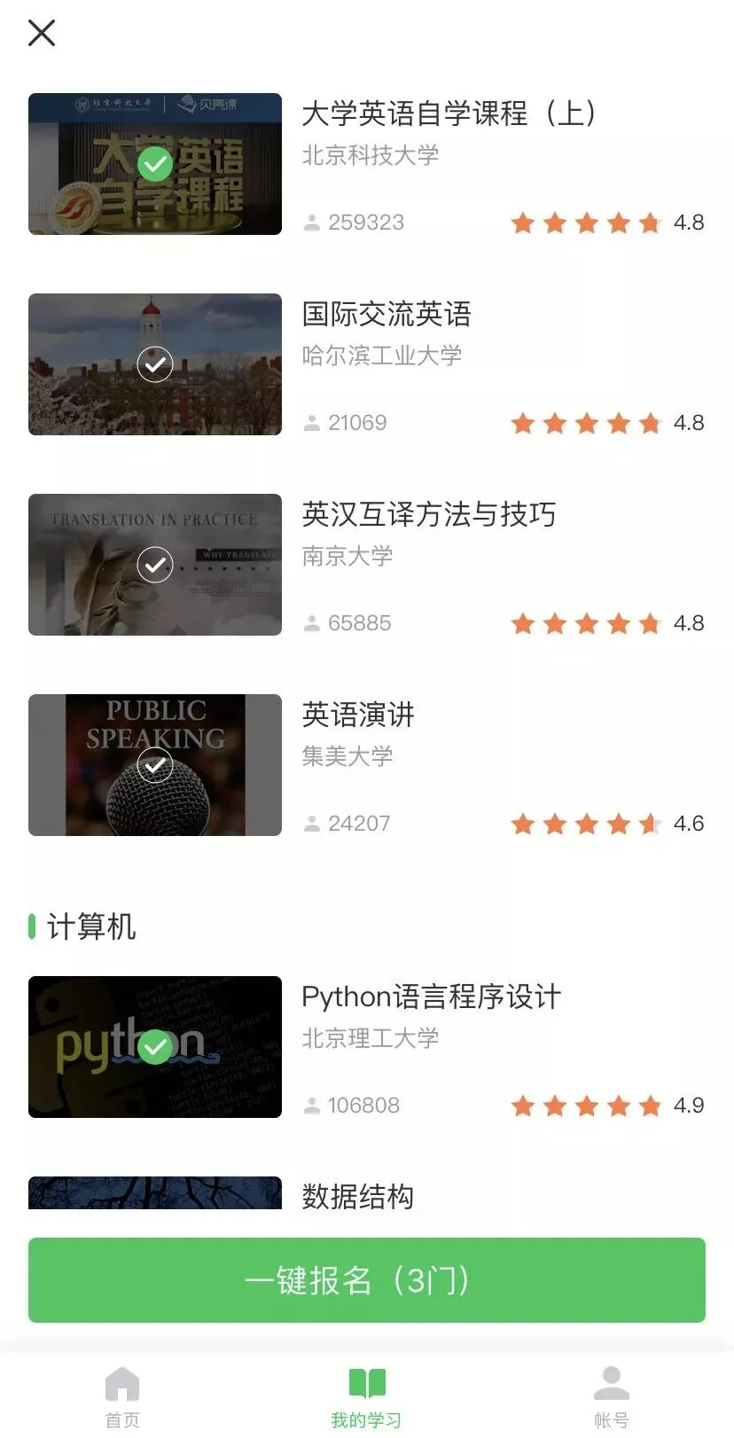 特别适合平时没办法也没时间线下去上实体课的人,还适合社交恐惧患者,想学什么在家就可以学,而且上面课程丰富程度绝对足够你活到老学到老的,从英语四六级到托福雅思,从心理学到最近的疫情防控教学统统都有,最重要的是大部分课程还都是免费的,有少数更深入更系统的课程是付费的,但是价格也是比线下报班便宜的多。