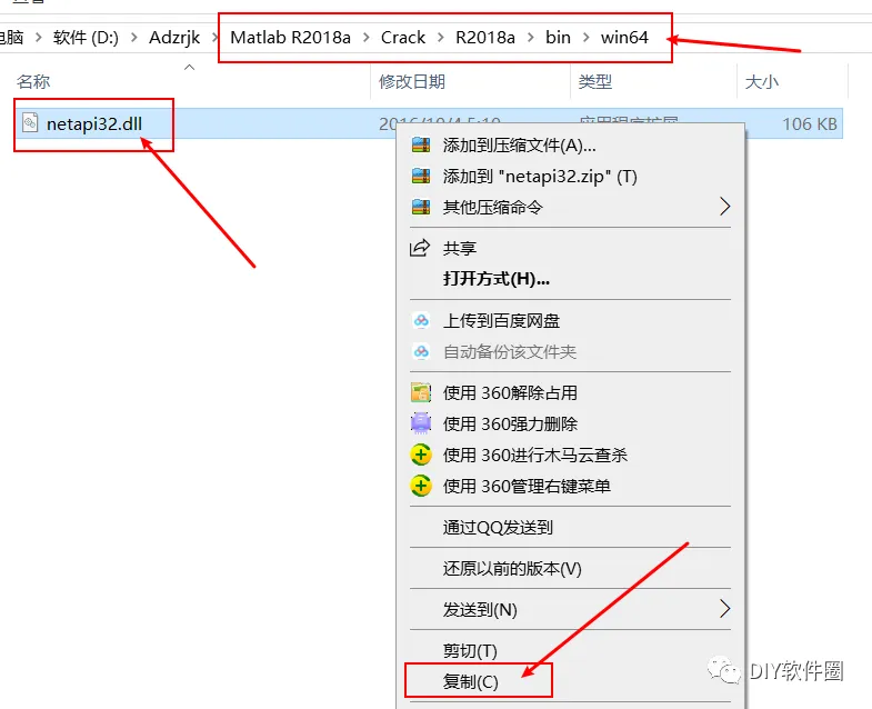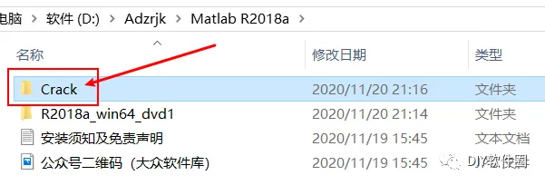 17.选择打开最初的安装包的Crack文件夹,双击打开R2019a-bin-win64文件夹,复制该文件夹下的netapi32.dll文件