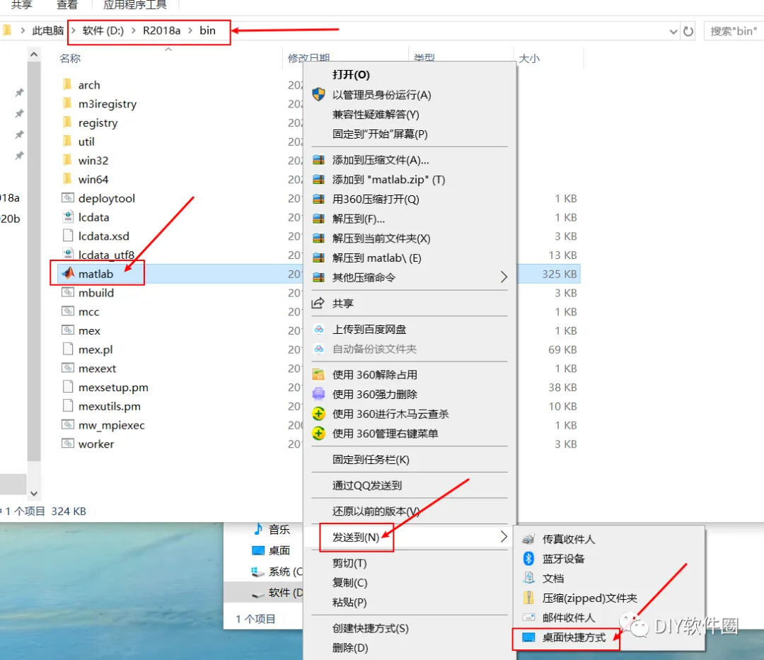 19.返回到安装路径下的bin文件夹内,找到matlab应用程序,右键发送到-桌面快捷方式;