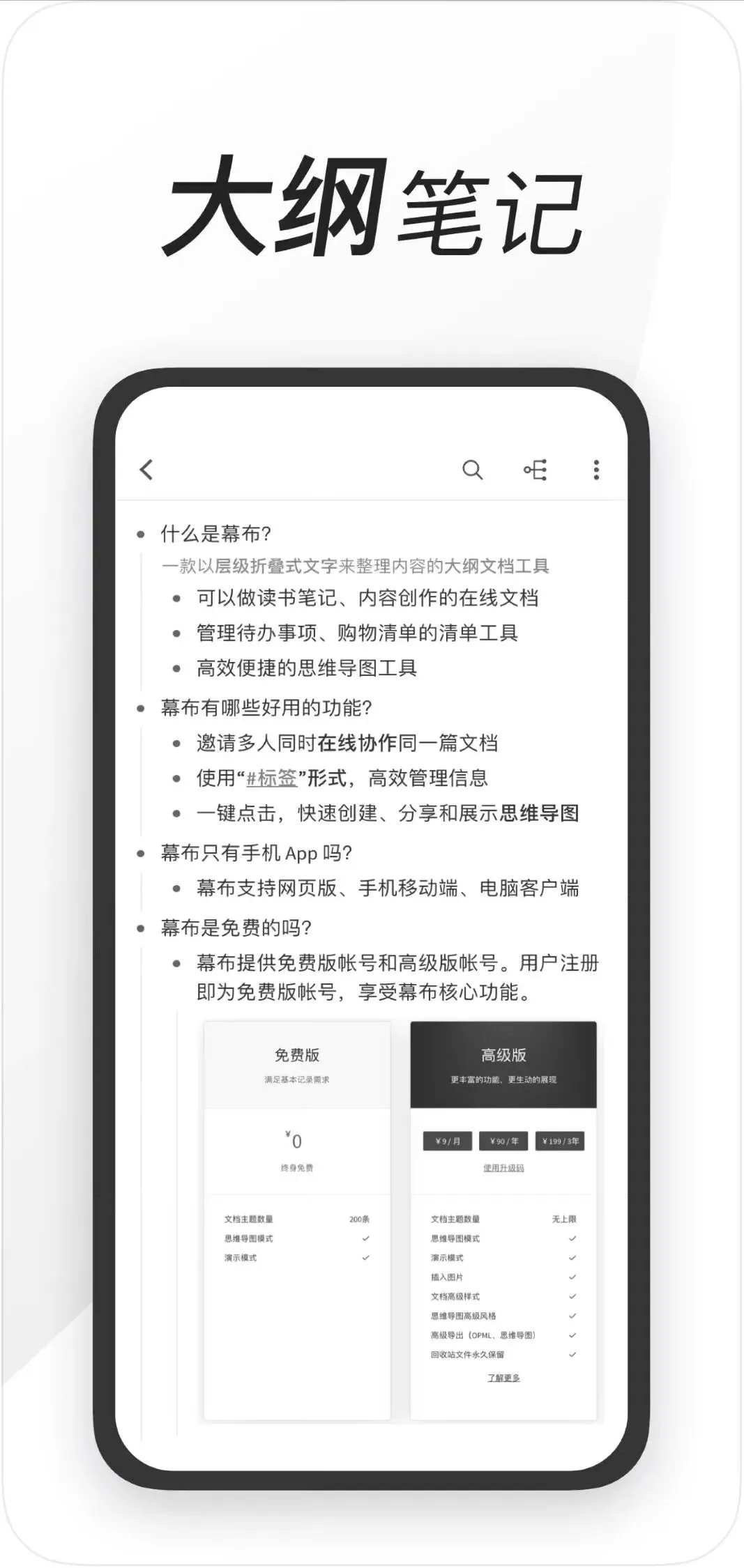 也是一个笔记软件,类似笔记和思维导图的合体。比如写文章前,列大纲,用它是最棒的。上课快速做笔记,散乱的知识内容也可以立刻被思维导图化,学生党推荐。