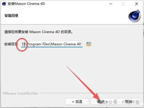 5.修改路径地址中的首字符“C”可更改安装位置(如:将C改为D表示安装到D盘),点击【前进】。