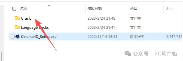 9.打开安装包解压后的【C4D 2023】文件夹,双击打开【Crack】文件夹。