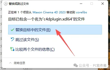 15.点击【替换目标中的文件】。