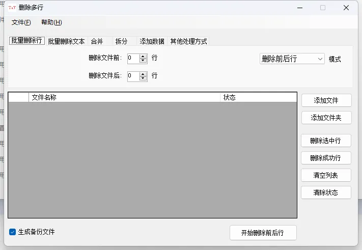 【万能TXT文件批量处理小工具】是一个免费体积小的多功能文本处理小工具,功能包括删除行,批量删除文本,拆分文档、修改内容、插入符号等操作,非常强大,可以说基本上你想批量处理TXT文件的功能它都有。